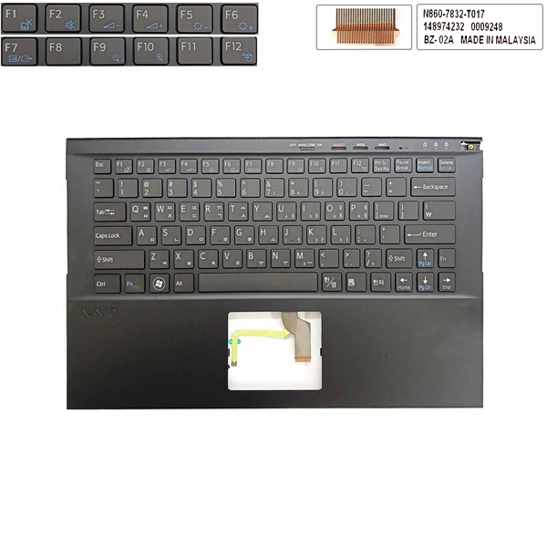Bàn phím Sony TZ V111678B Song ngữ Nhật Trắng Chữ đen Kèm khung (ORG +)
