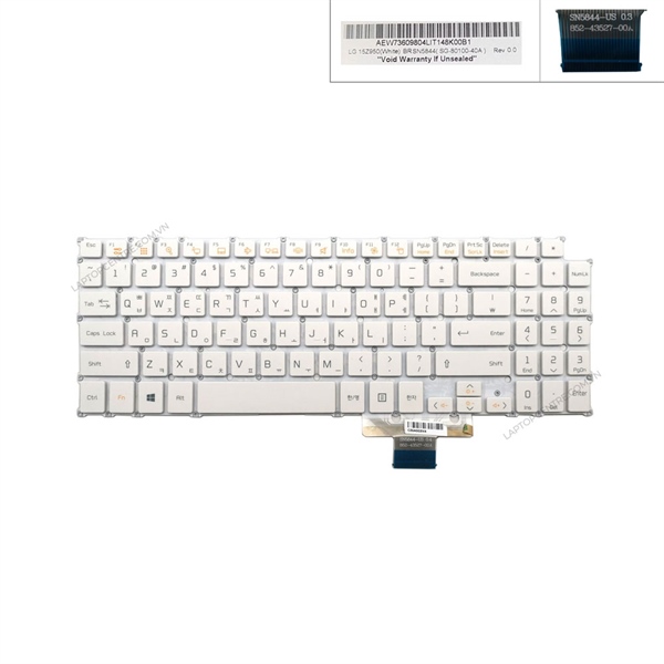 Bàn phím LG Gram 15Z950 SN5844 Song ngữ Hàn Phím trắng Chữ đen Không khung & 15Z940 15Z960 (ORG +)