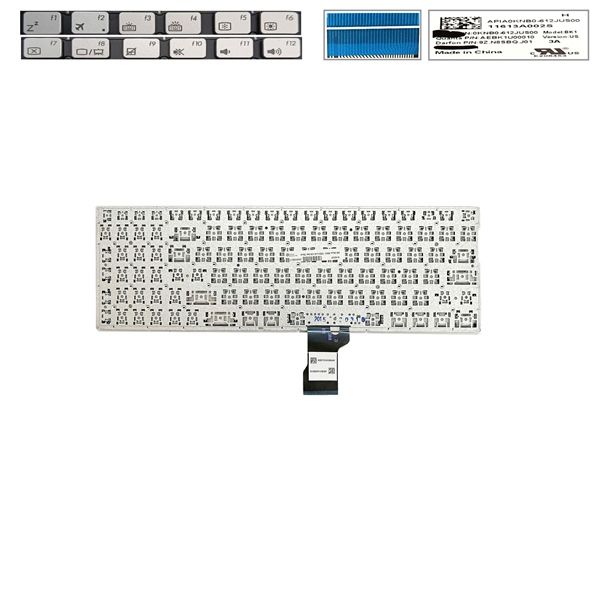 Bàn phím Asus Q501LA US Phím bạc Chữ đen Xuyên đèn Không ốc & Q502 Q552 UX52 UX501 (ORG +)