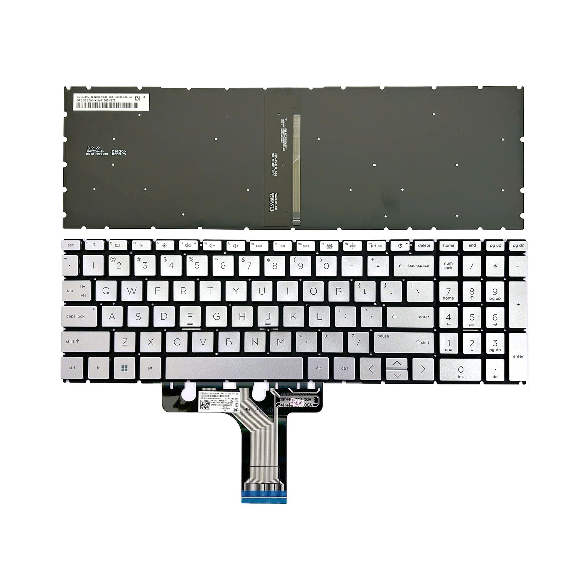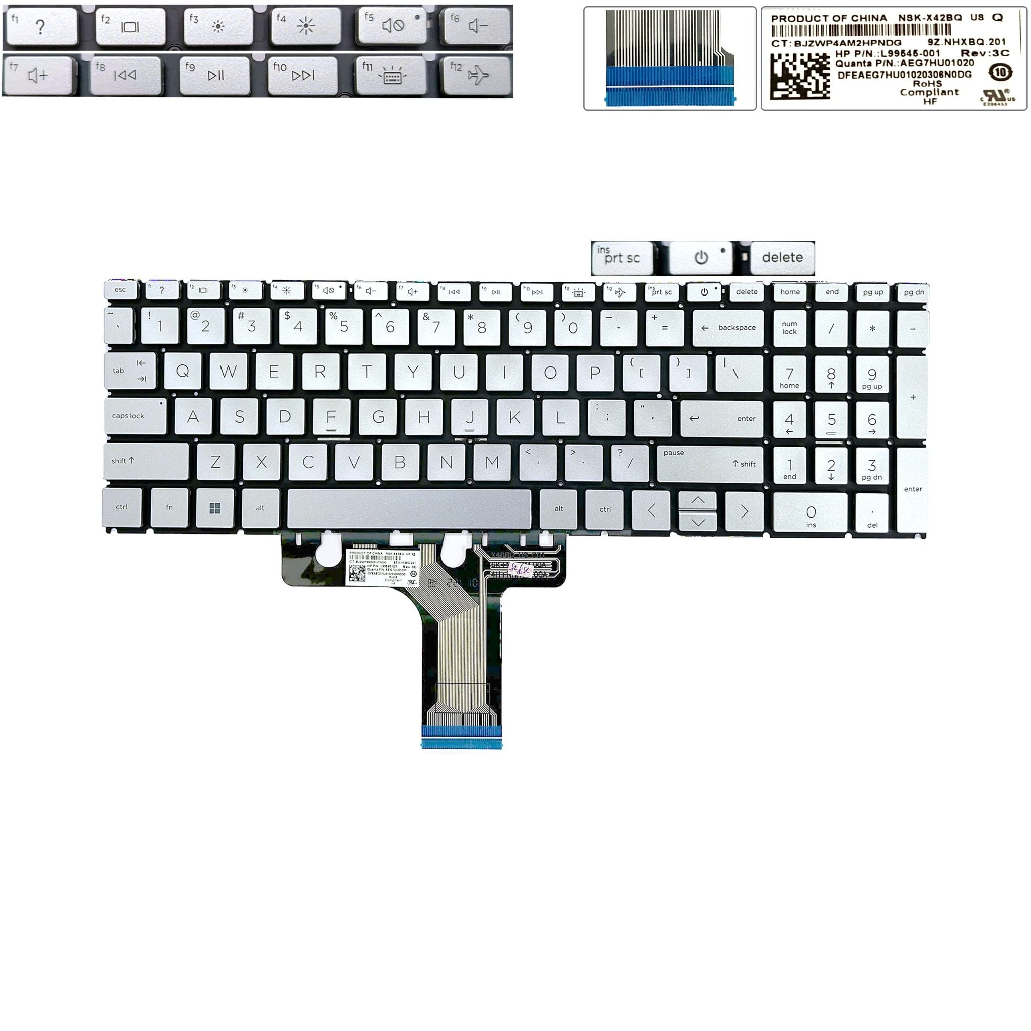 Bàn phím HP Pavilion 15 EG L99545-051 US Phím bạc Chữ đen Đèn Số Nút nguồn Không khung (ORG +)