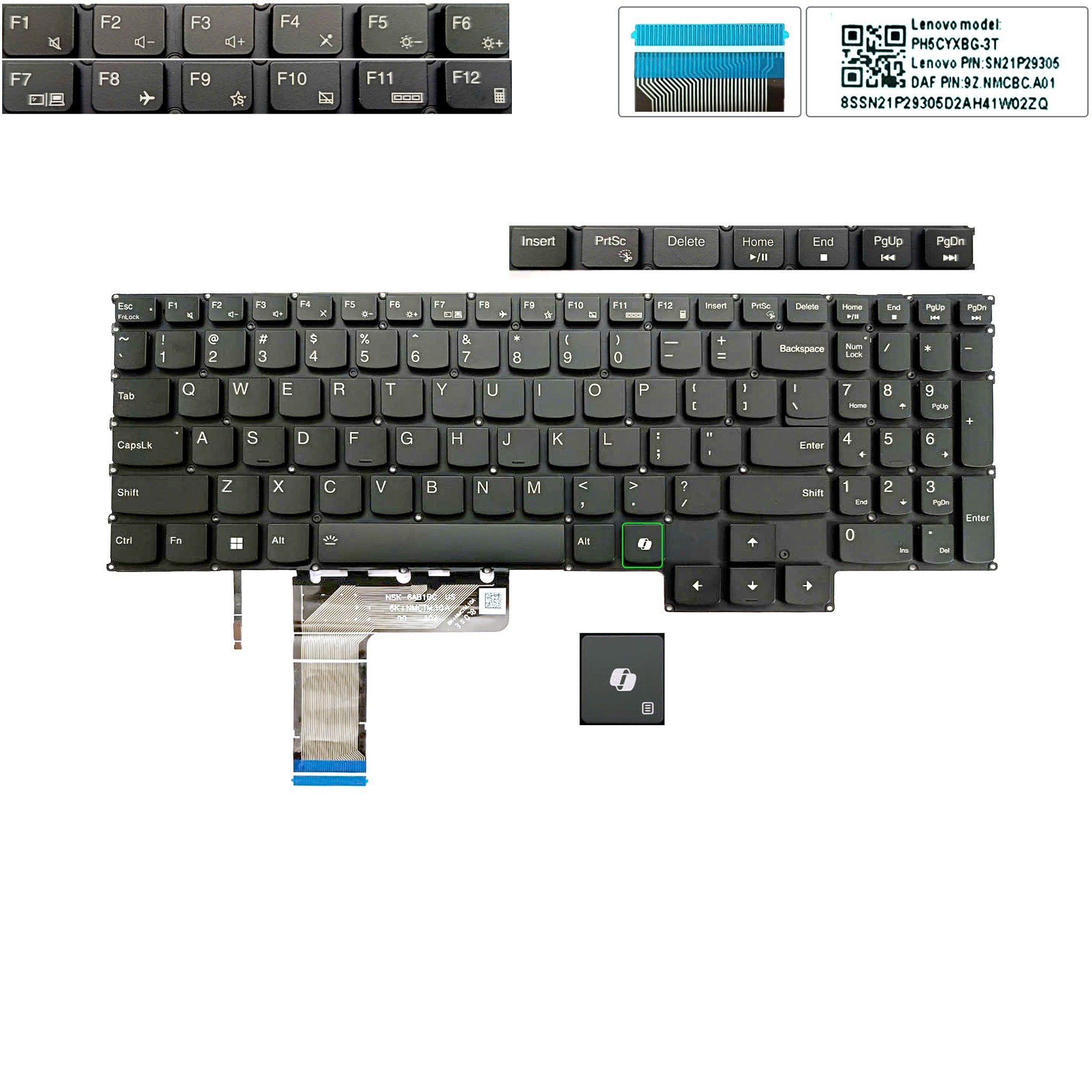 Bàn phím Lenovo LOQ 15IRX9 SN21P29305 PH5CYXBG-3T US Phím đen Chữ trắng Đèn Nút AI Không khung & LOQ 15ARP9 15IAX9 15IAX9E 15IAX9I (ORG +)