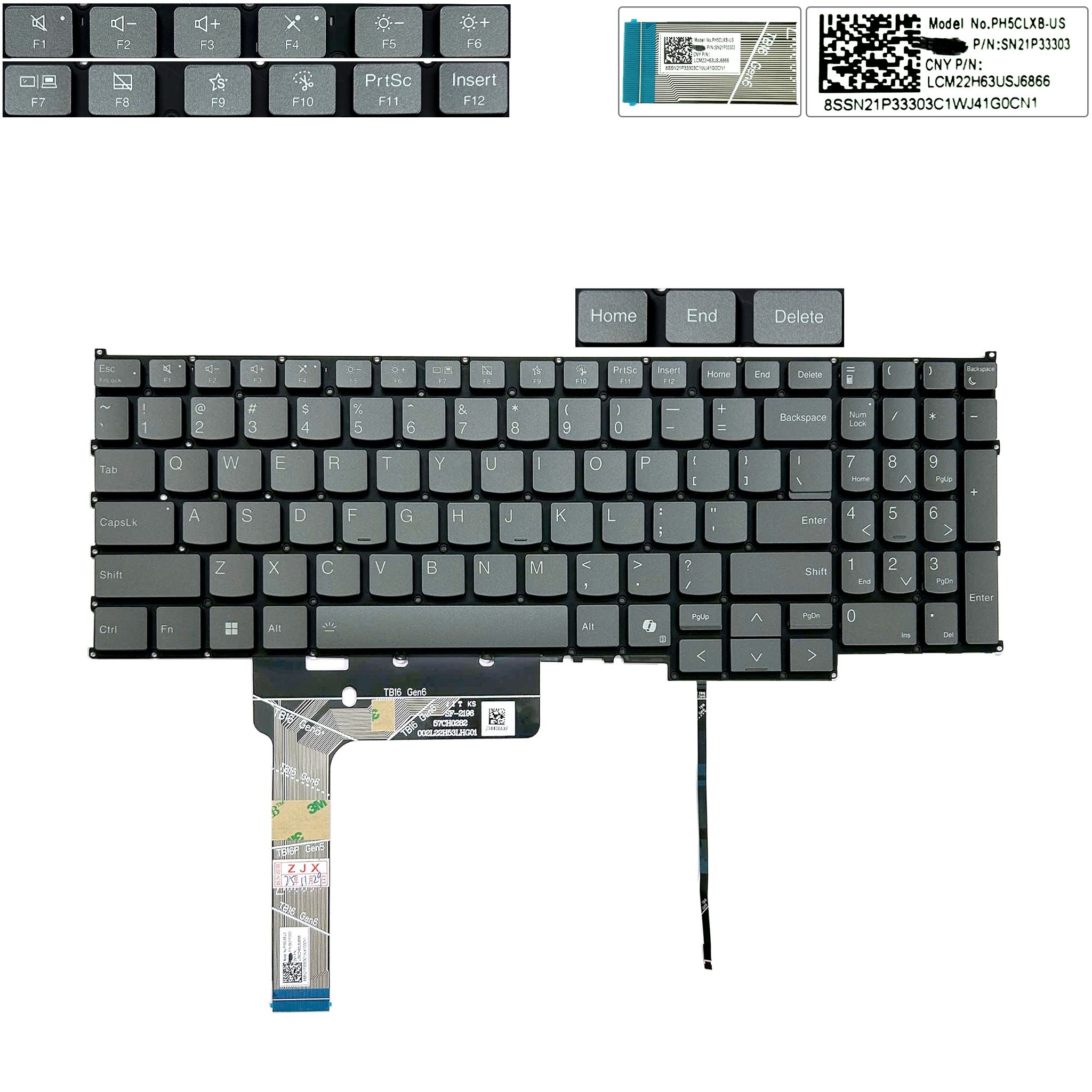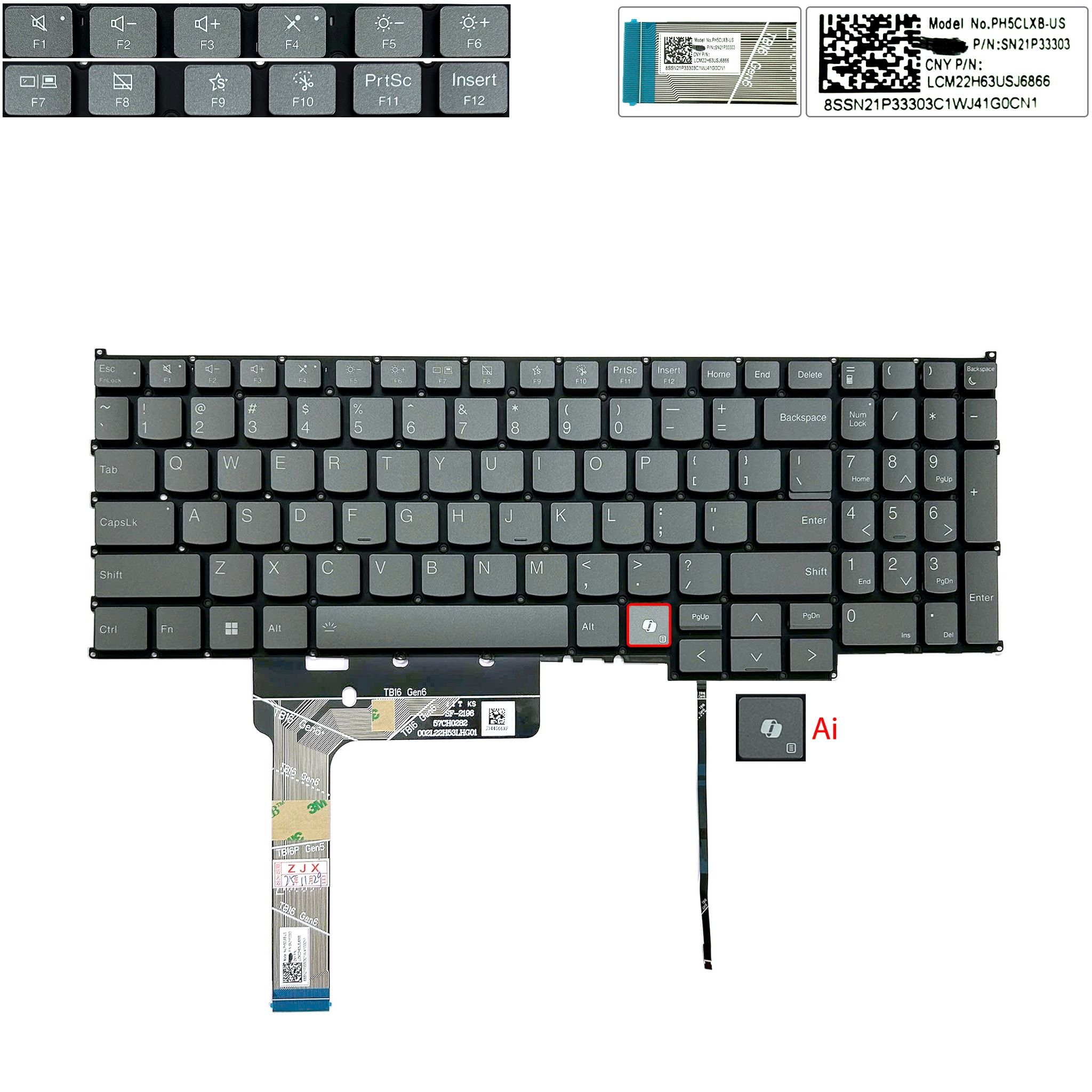 Bàn phím Lenovo ThinkBook 16 G6+ IMH năm 2024 SN21P33303 US Phím ghi Chữ trắng Đèn Nút AI Số Không khung & 16 G6+ AHP 16 G7 16P G5 (ORG +)