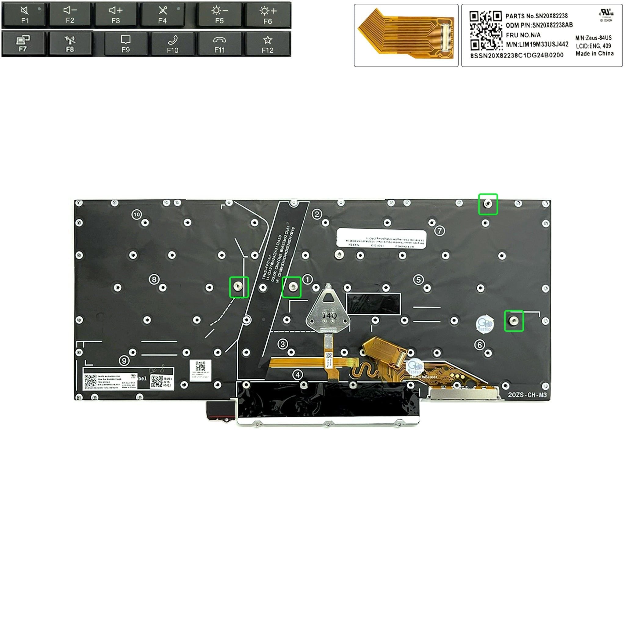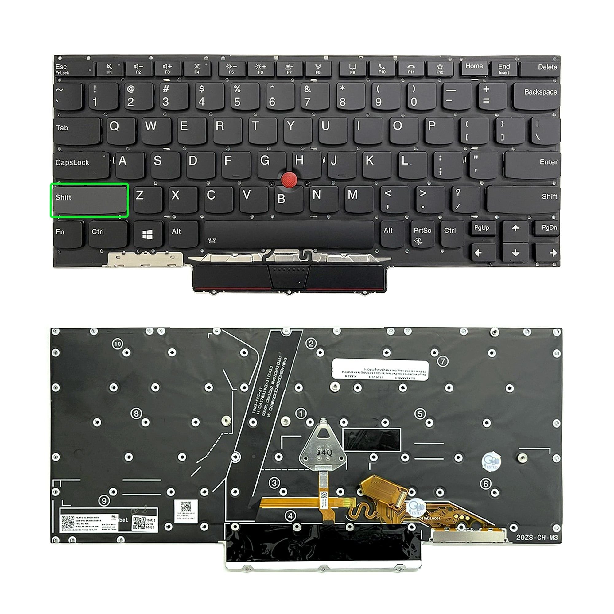 Bàn phím Lenovo ThinkPad Nano X1 Gen 1 SN20X82274 US Phím đen Chữ trắng Đèn Không khung & SN20X82238 (HCP +)