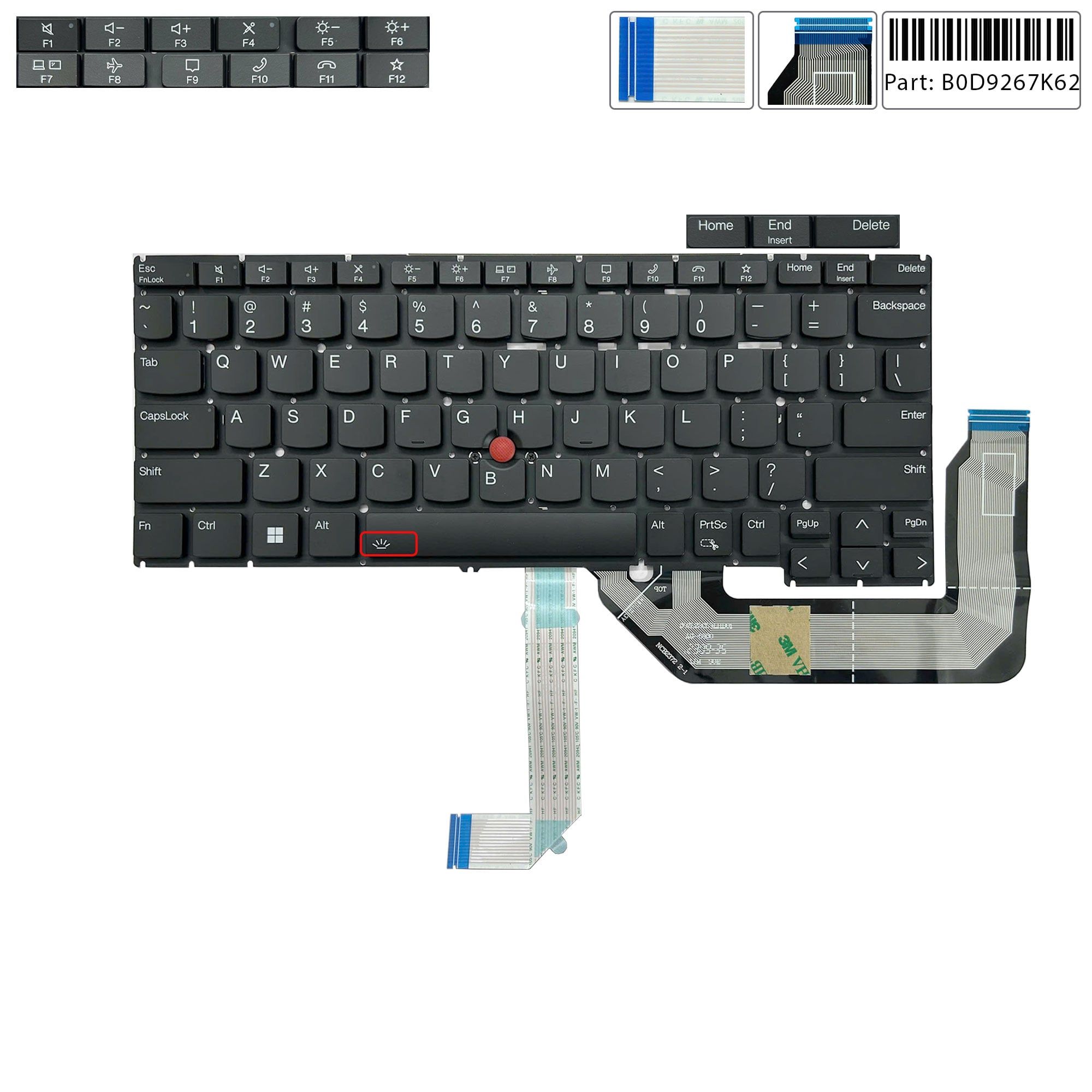 Bàn phím Lenovo Thinkpad X13 Gen 4 Type 21EX 21EY B0D9267K62 US Phím đen Chữ trắng Đèn Chuột Không khung & 22C62411-FPC (ORG +)