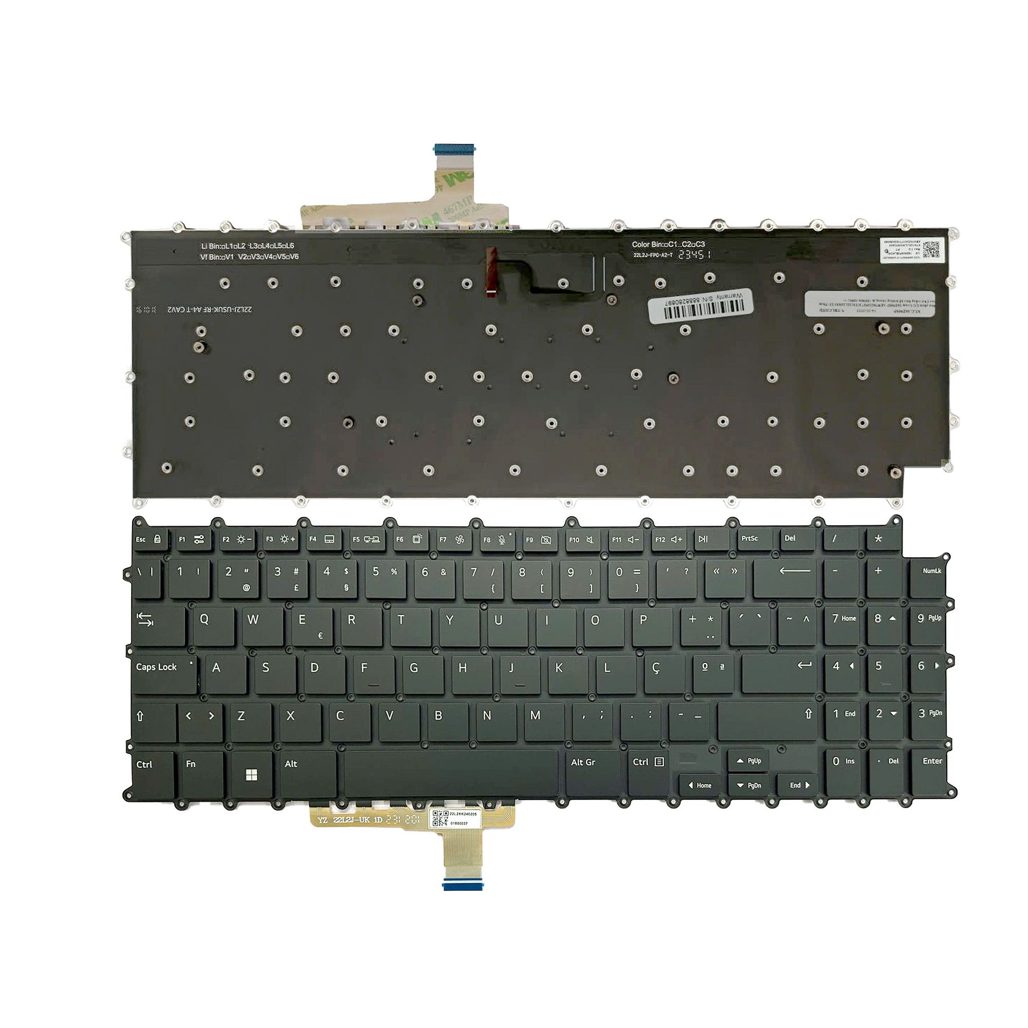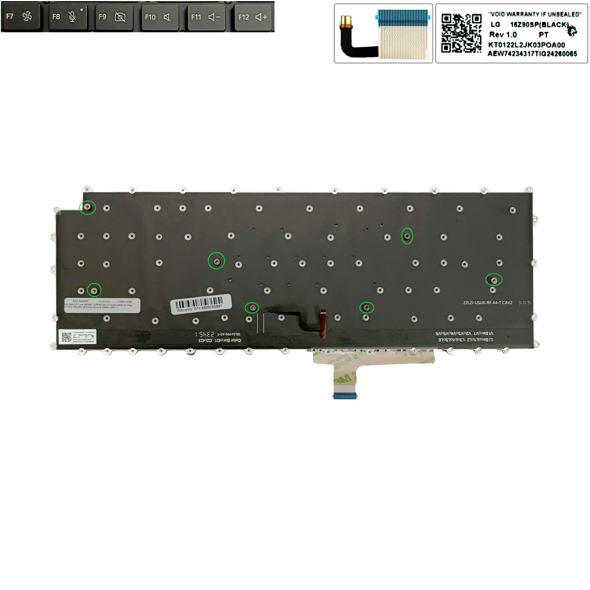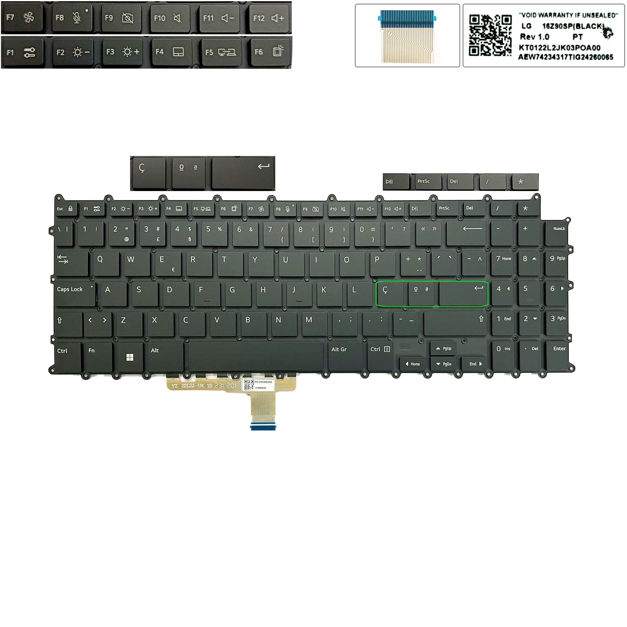 Bàn phím LG Gram 16Z90SP AEW74233927 KT0122L2JK03 EU (Enter nhỏ) Phím đen Chữ trắng Đèn Số Không khung (ORG +)