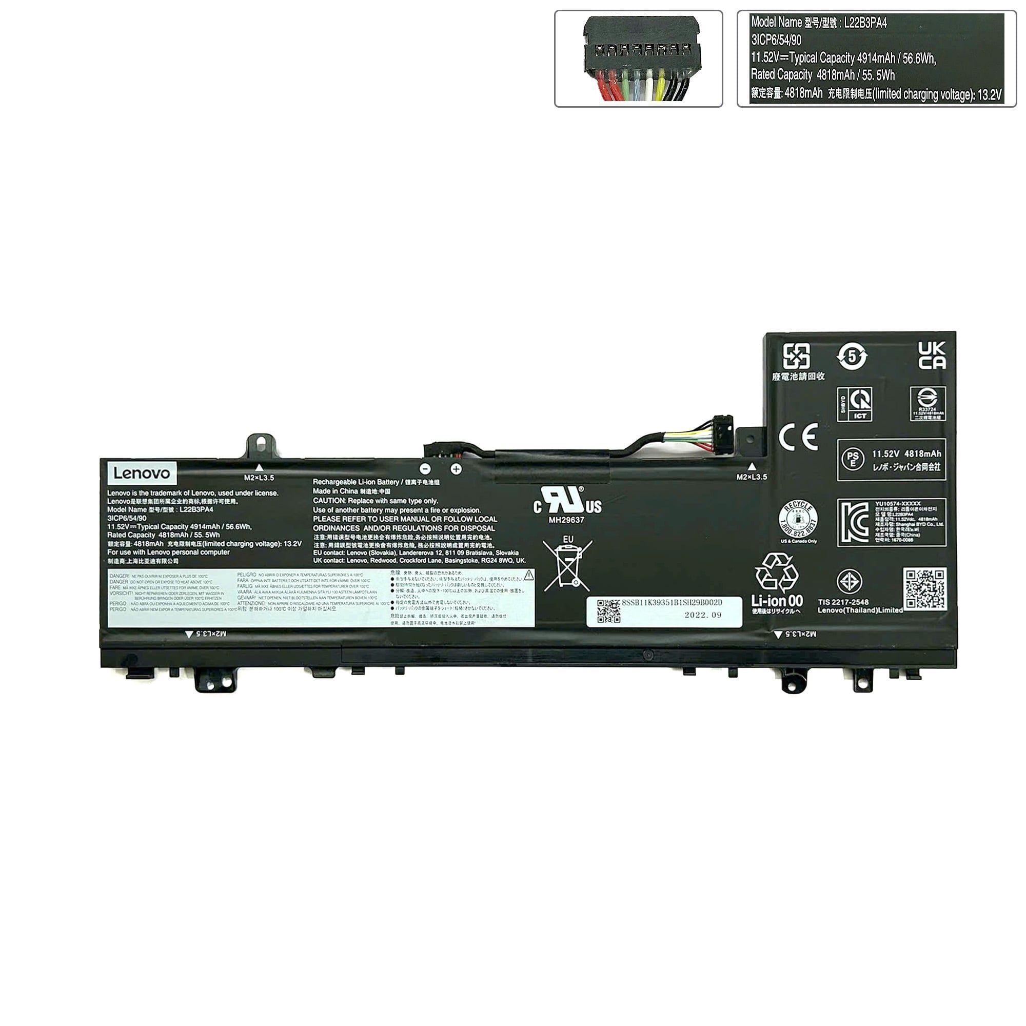 Pin Lenovo IdeaPad Slim 5 14ABR8 L22B3PA4 11,52V 56,6Wh 4914mAh & 14IRL8 14IAH8 Slim 5 16ABR8 16IRL8 16IAH8 L22C3PA4 (ORG +)