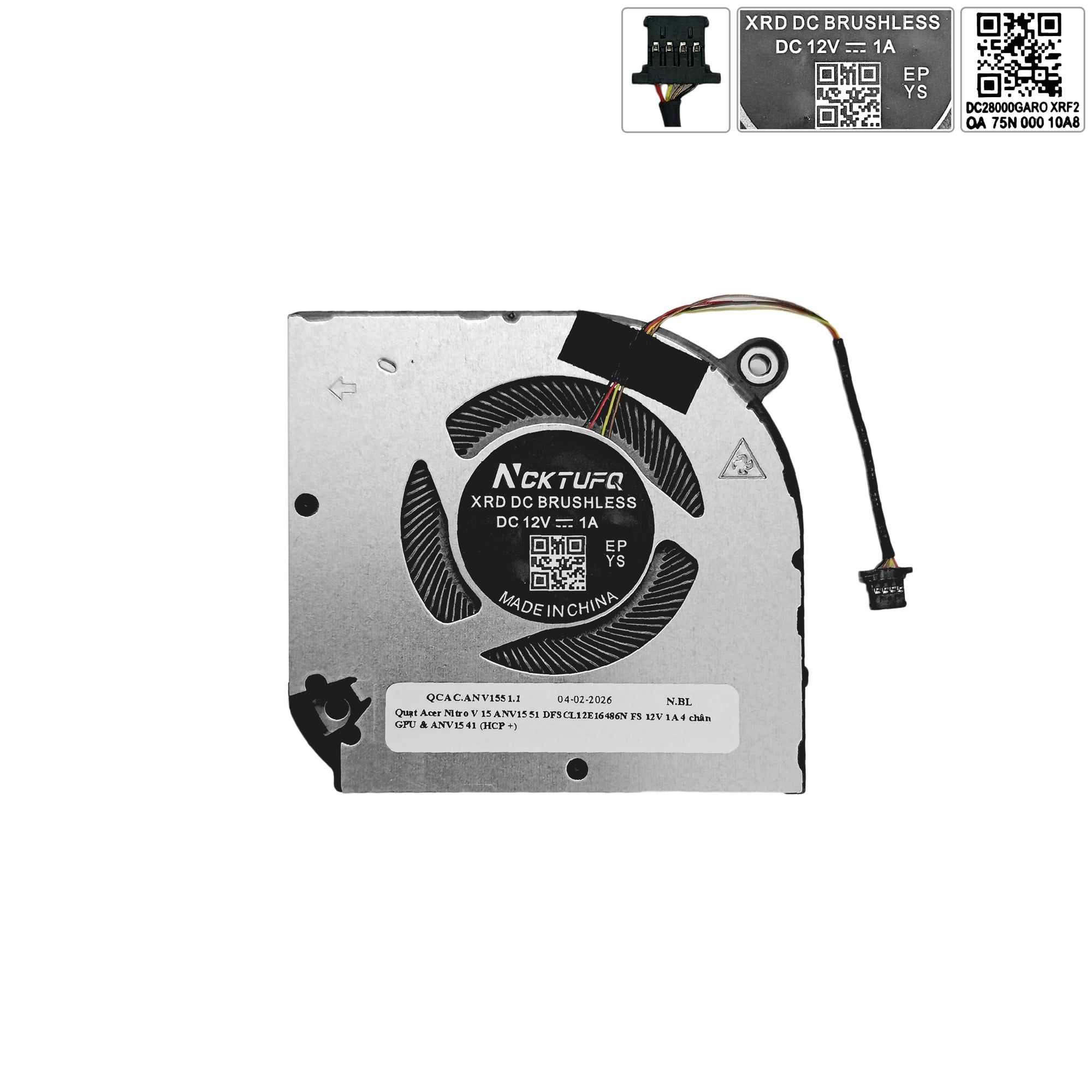Quạt Acer Nitro V 15 ANV15 51 DFSCL12E16486N FS 12V 1A 4 chân GPU & ANV15 41 (HCP +)