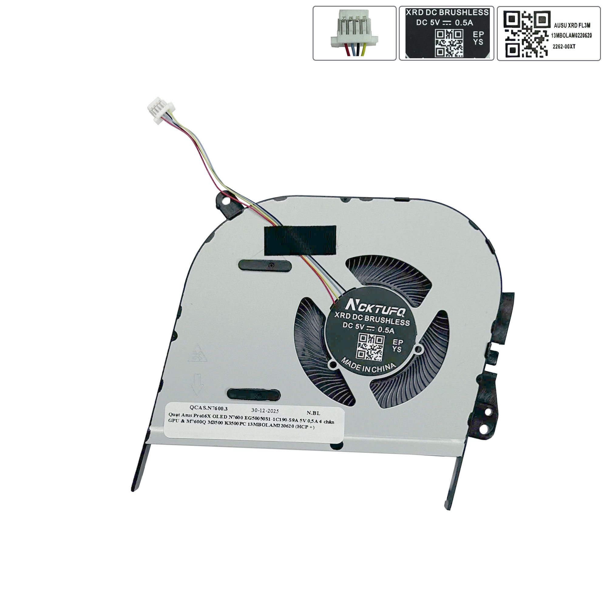 Quạt Asus Pro16X OLED N7600 EG50050S1-1C190-S9A 5V 0,5A 4 chân GPU & M7600Q M3500 K3500PC 13MBOLAM220620 (HCP +)