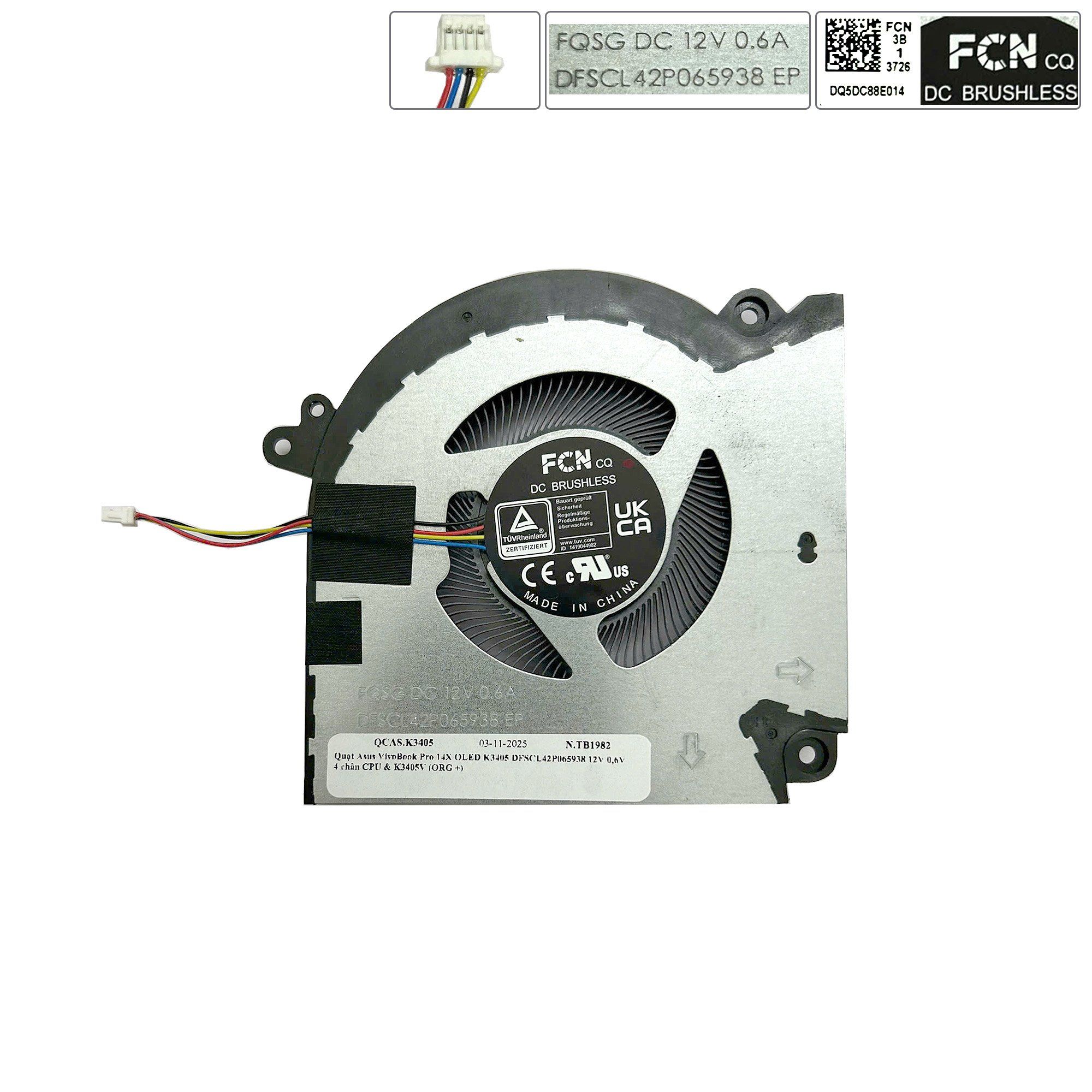 Quạt Asus VivoBook Pro 14X OLED K3405 DFSCL42P065938 12V 0,6V 4 chân CPU & K3405V (ORG +)