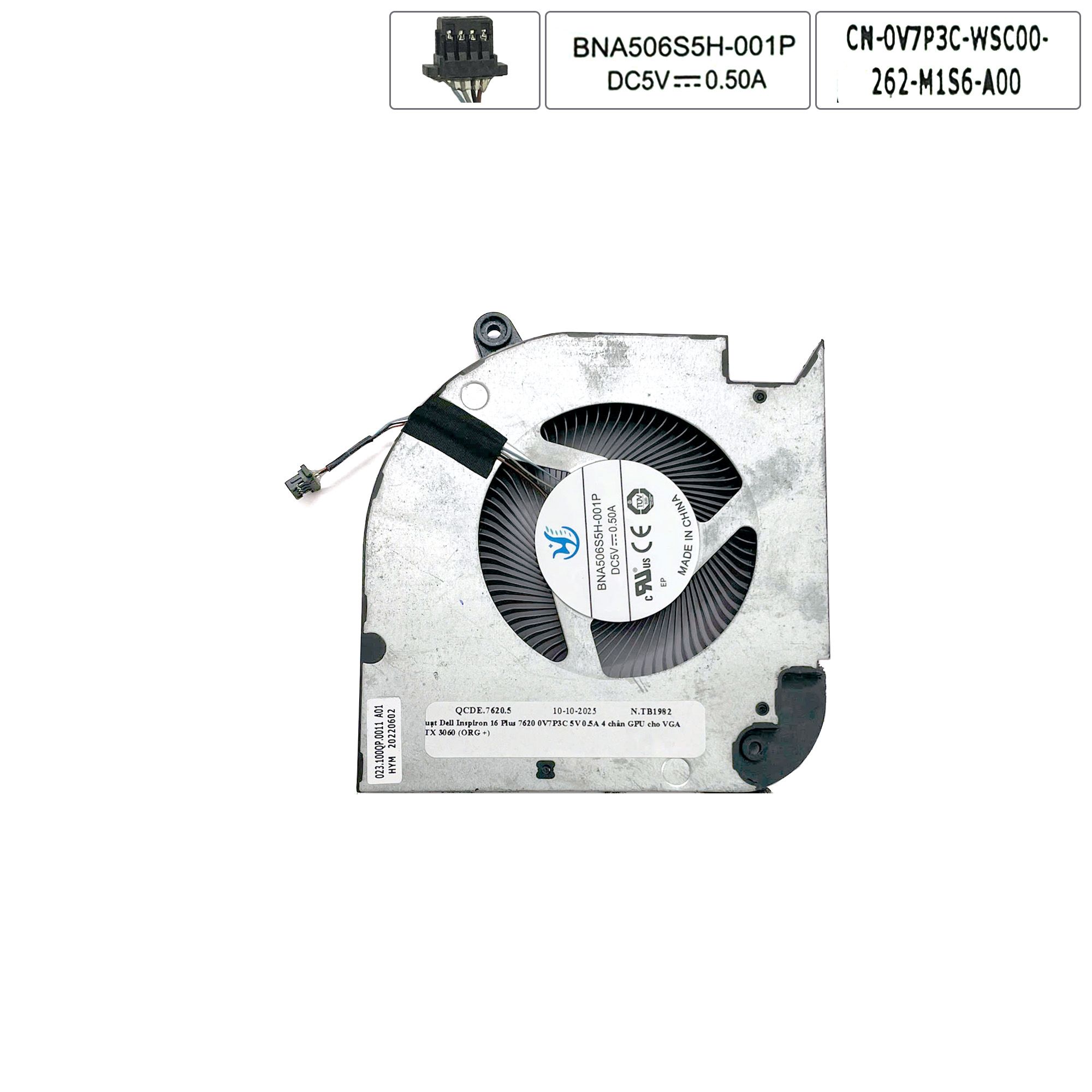 Quạt Dell Inspiron 16 Plus 7620 0V7P3C 5V 0.5A 4 chân GPU cho VGA RTX 3060 (ORG +)