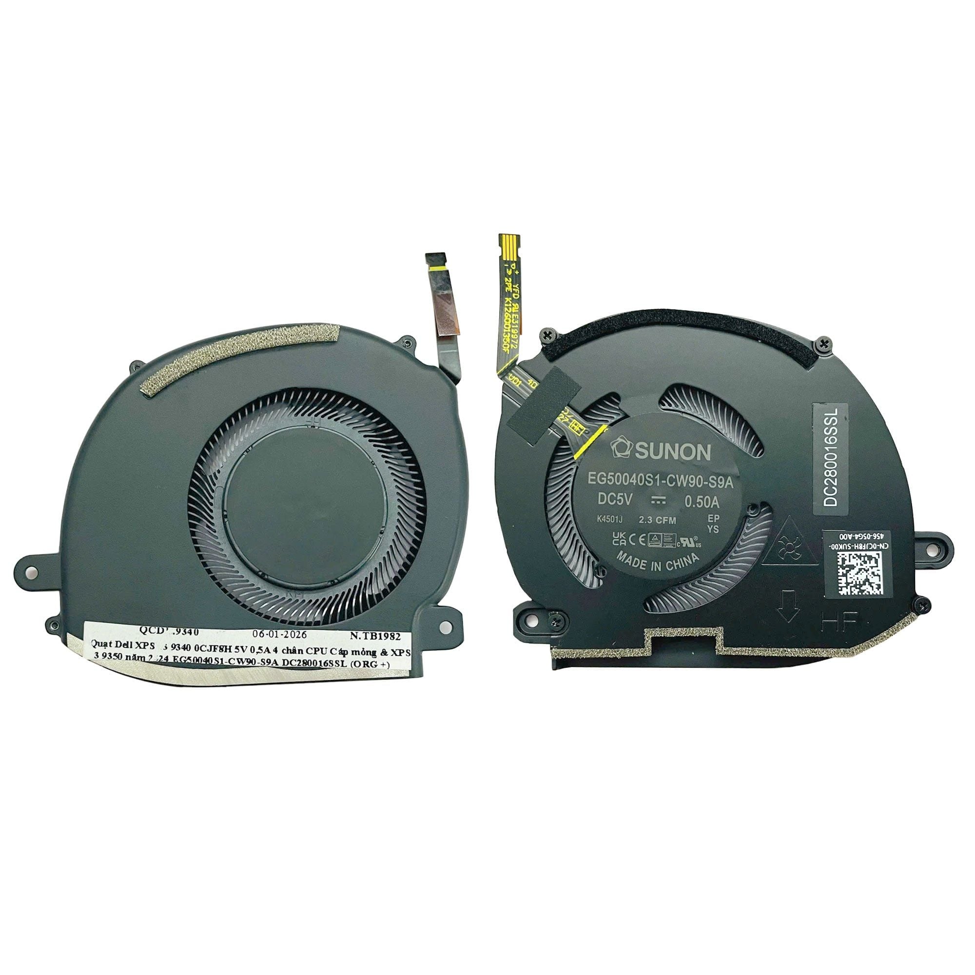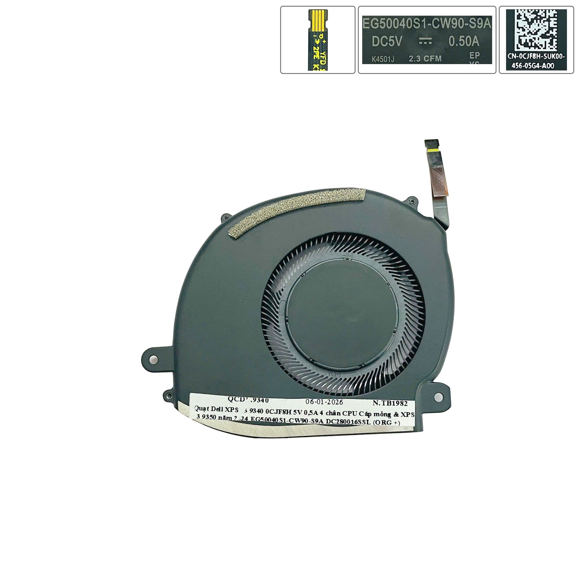 Quạt Dell XPS 13 9340 0CJF8H 5V 0,5A 4 chân CPU Cáp mỏng & XPS 13 9350 năm 2024 EG50040S1-CW90-S9A DC280016SSL (ORG +)