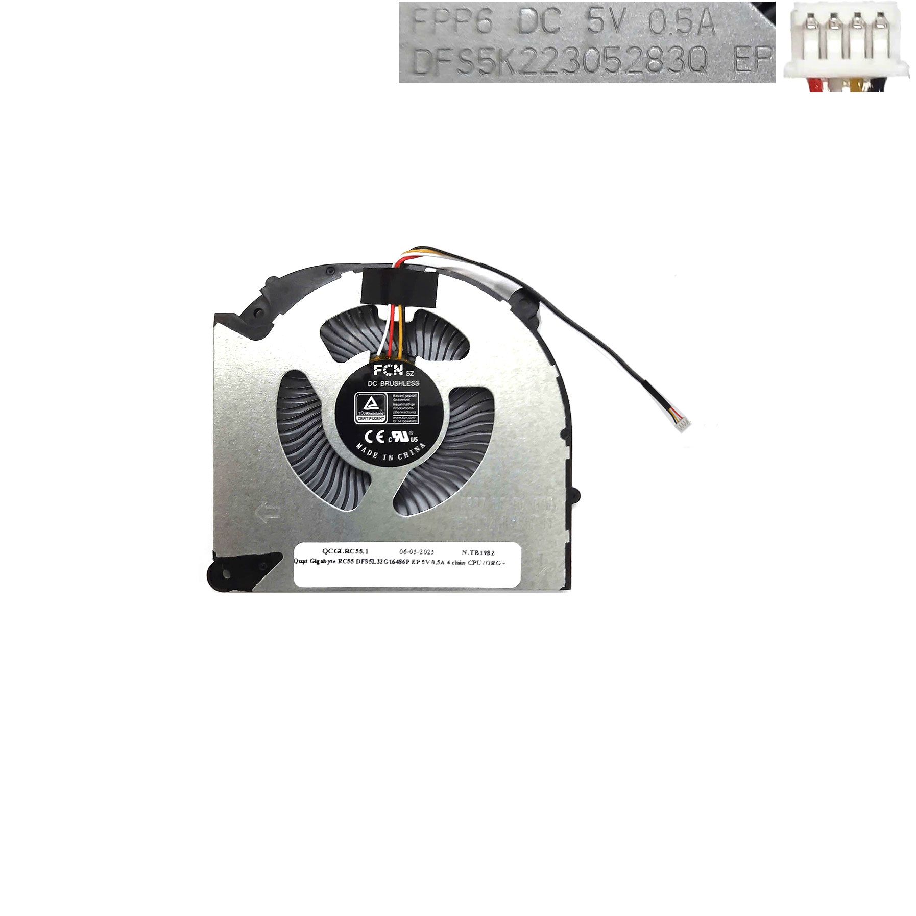 Quạt Gigabyte RC55 DFS5L32G16486P EP 5V 0,5A 4 chân CPU (ORG +)