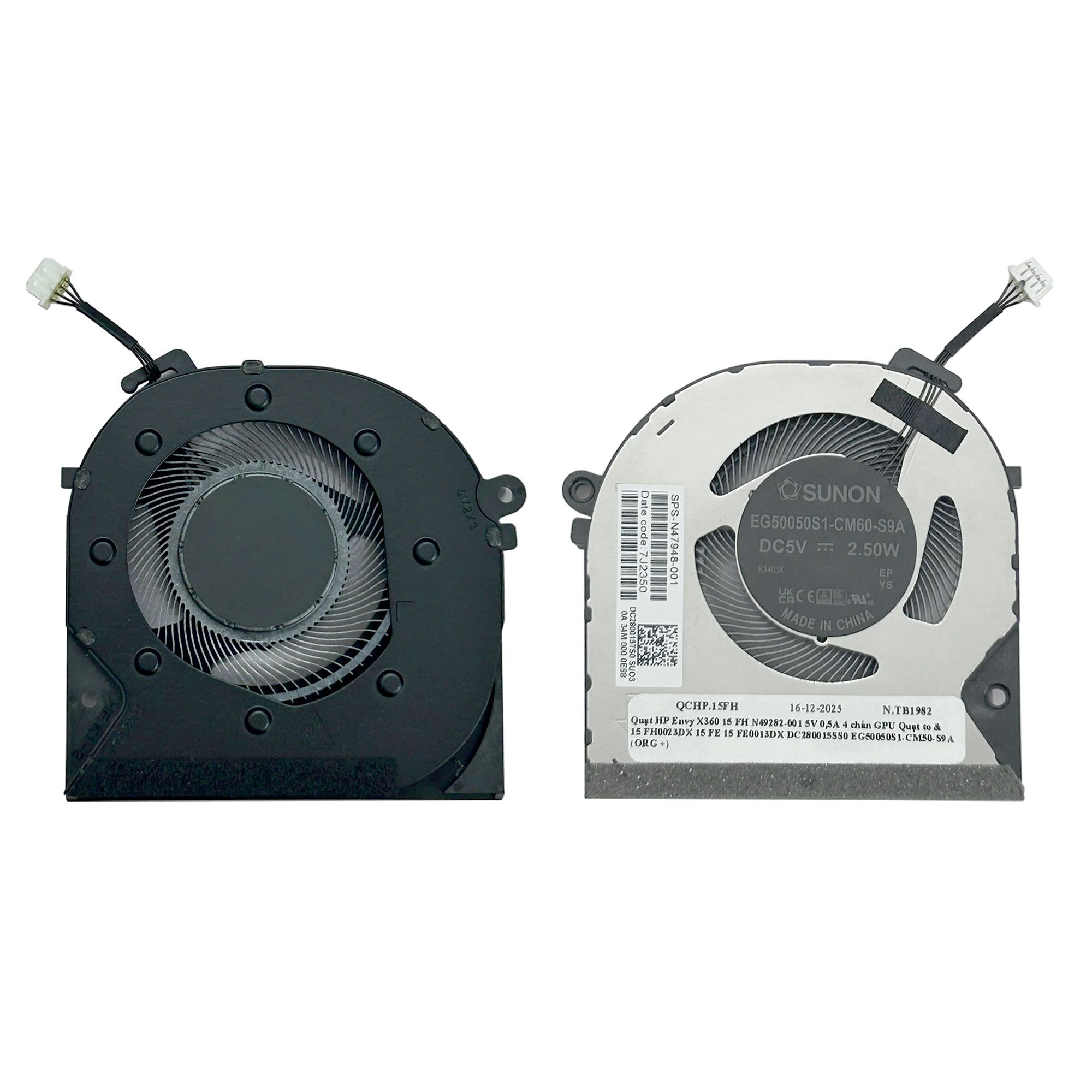 Quạt HP Envy X360 15 FH N49282-001 5V 0,5A 4 chân GPU Quạt to & 15 FH0023DX 15 FE 15 FE0013DX DC280015SS0 EG50050S1-CM50-S9A (ORG +)