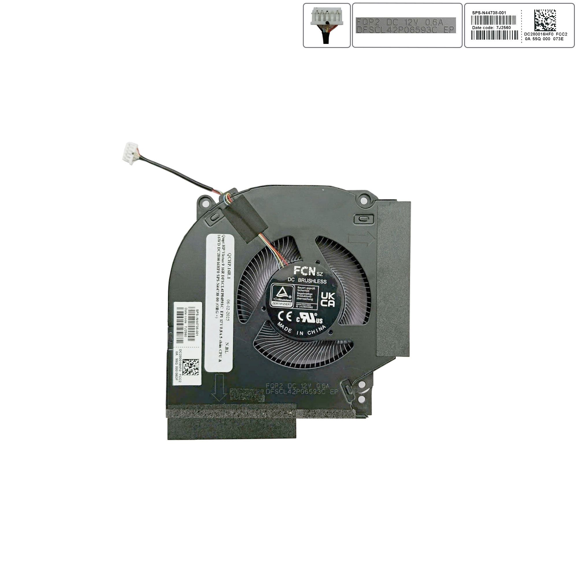 Quạt HP Victus 9 16R DFSCL42P06593C EP1 12V 0,8A 5 chân CPU & 16WD DC280016HF0 SPS-N44738-00 (ORG +)