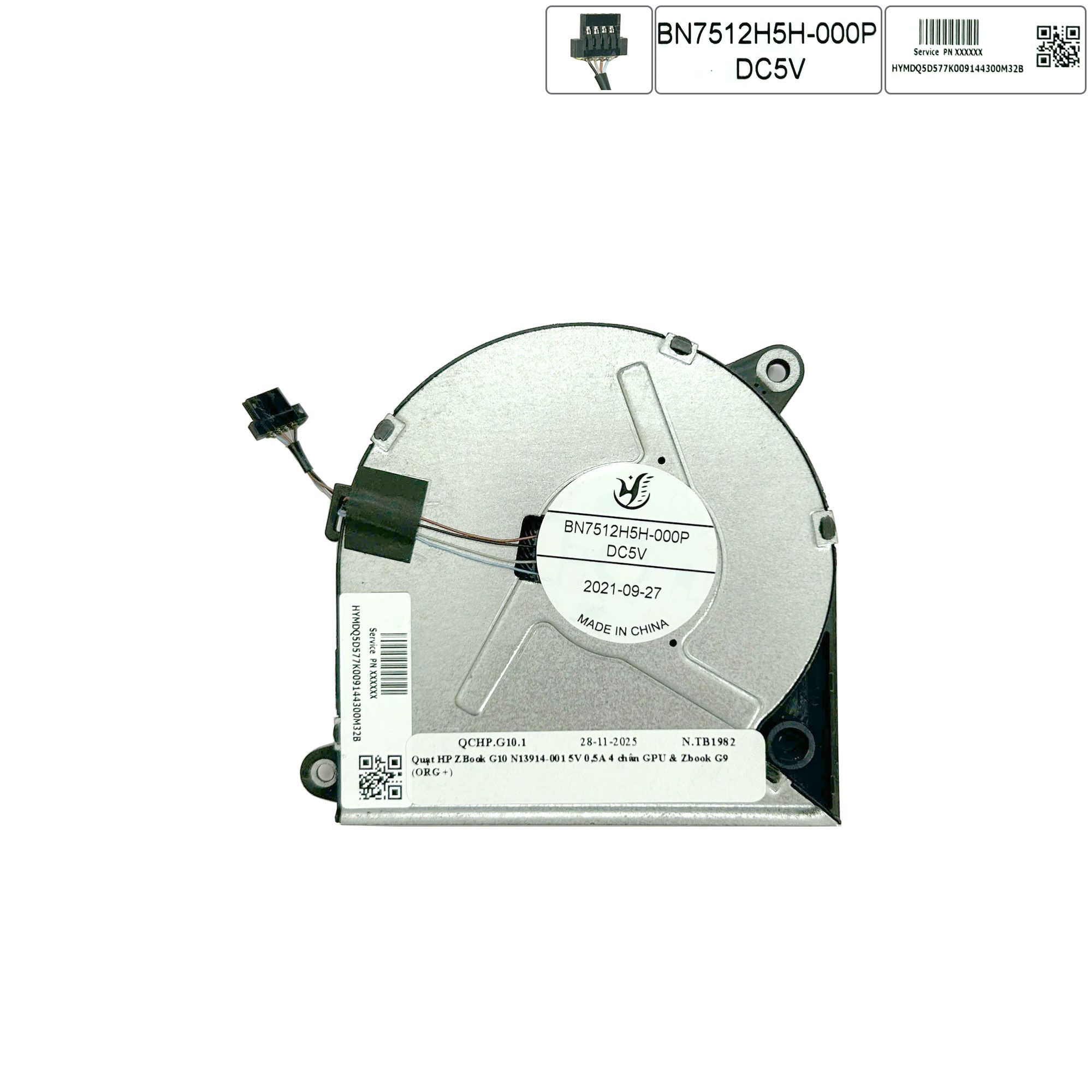 Quạt HP ZBook G10 N13914-001 5V 0,5A 4 chân GPU & Zbook G9 7512H5H-000P (ORG +)