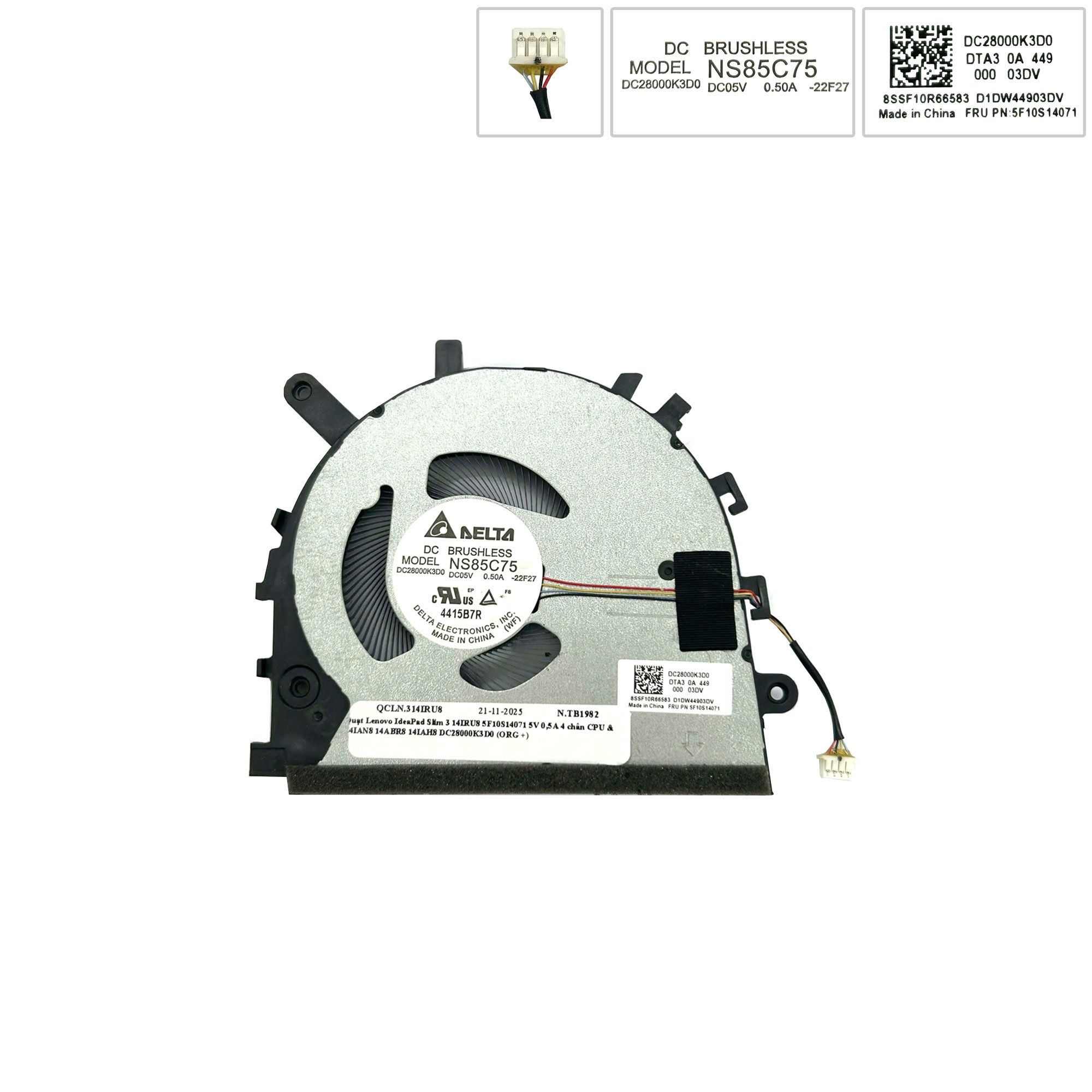 Quạt Lenovo IdeaPad Slim 3 14IRU8 5F10S14071 5V 0,5A 4 chân CPU & 14IAN8 14ABR8 14IAH8 DC28000K3D0 (ORG +