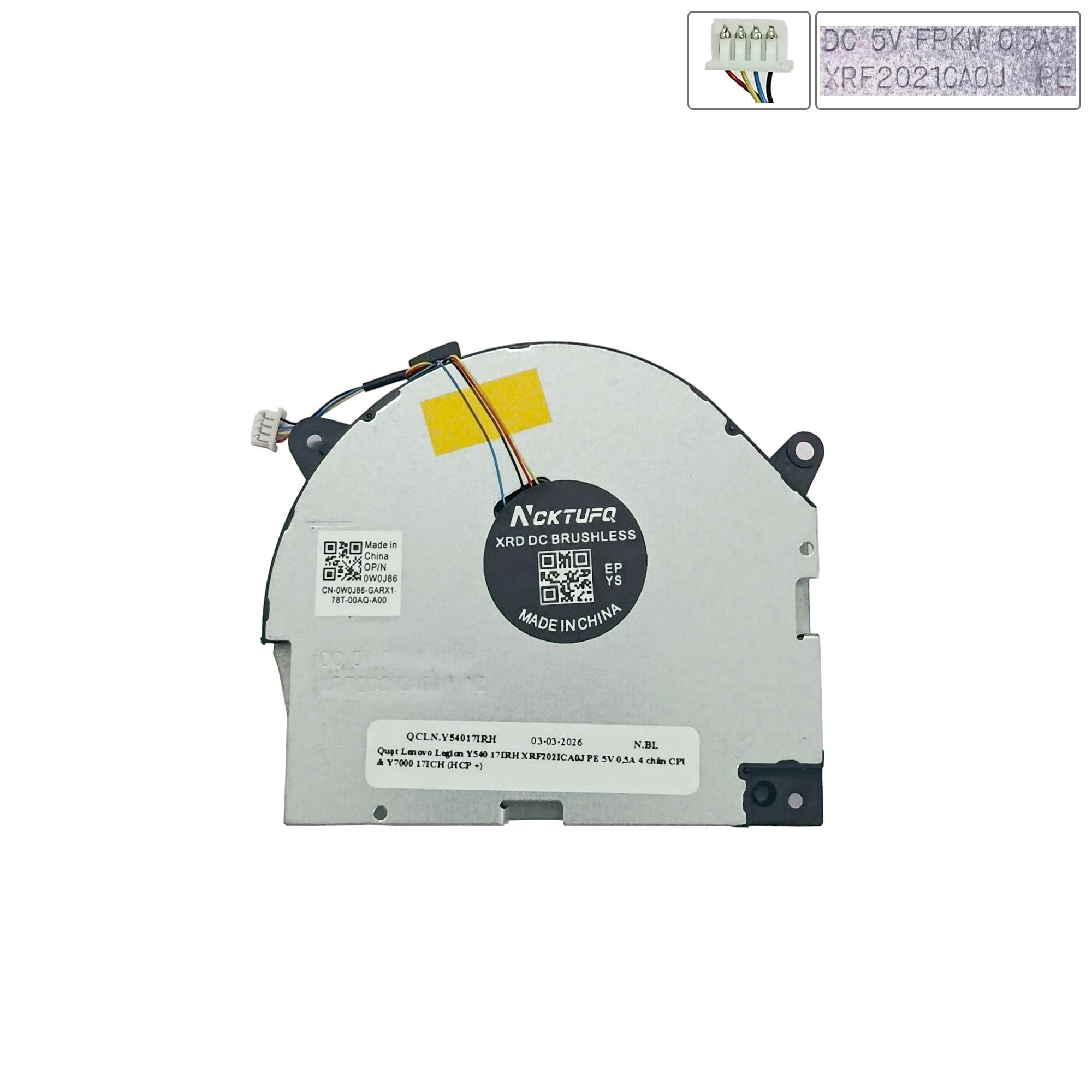 Quạt Lenovo Legion Y540 17IRH XRF202ICA0J PE 5V 0,5A 4 chân CPU & Y7000 17ICH (HCP +)