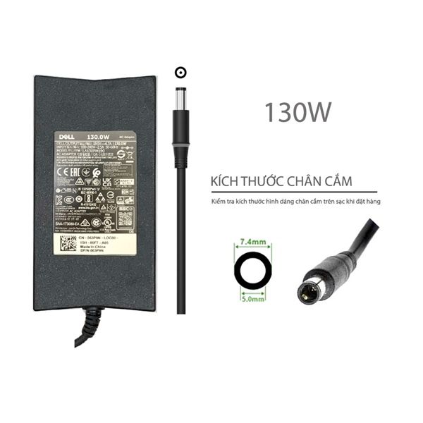 Sạc Dell 130W 19.5V 6.67A L401X Chân 7.4*5.0 kim Mỏng & M60 M70 M90 M2400 M2800 M4400 M4700 M4500 M6300 M6700;Dell XPS:M1210 M1330 M140 M170 M171 0 14 (L401X) 15 (L501X) 15 (L502x) 17 (L701X) L702X (ORG +)