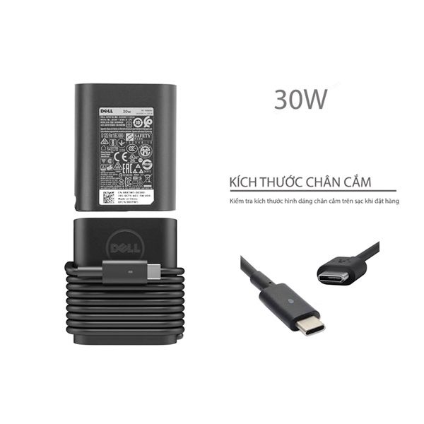 Sạc Dell 30W 5V 12V 20V 2A 1.5A 08XTW5 Chân USB C & Dell XPS12 9250 Latitude 7275 7370 9365 5175 5179 (ORG >)