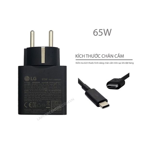 Sạc LG 65W 3.25A 20V LP65WGC20P-EK B chân USB C Vuông màu Đen Kèm dây USB C (ORG +)