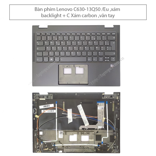 Bàn phím Lenovo Yoga C630 13 5CB0S15936 EU Phím ghi Chữ trắng Đèn Kèm C Ghi Đậm Carbon Khoá vân tay & C630 13Q50 (ORG +)
